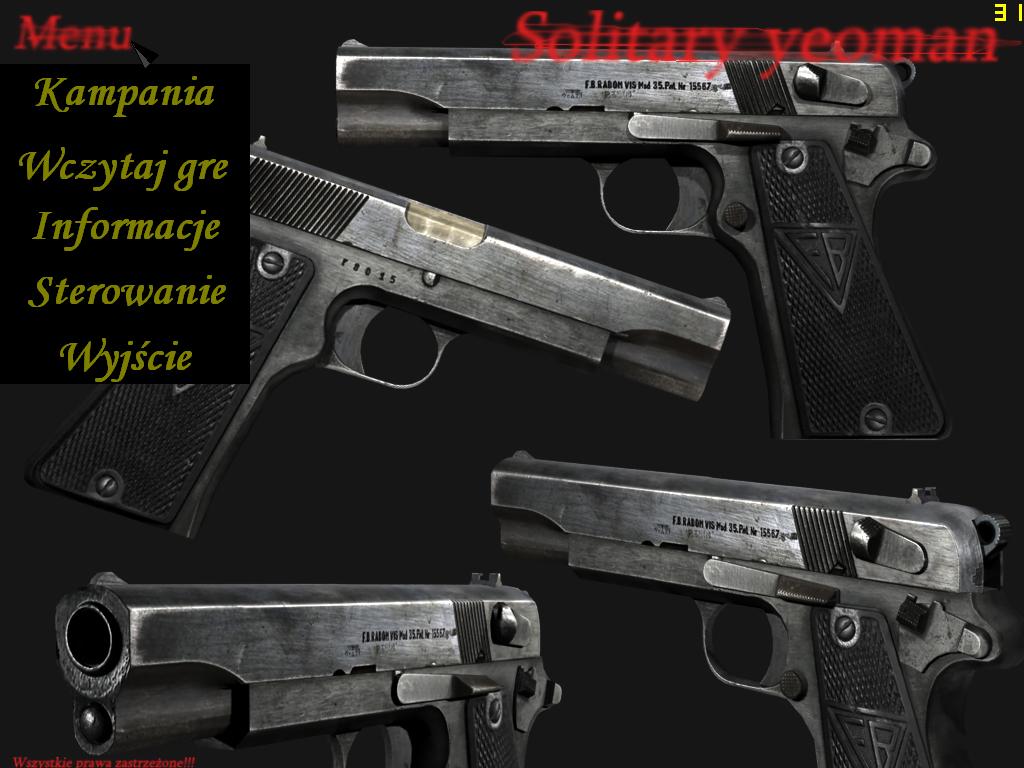 Egzekutor Opublikowano 9 Sierpnia 2008 Udostępnij Opublikowano 9 Sierpnia 2008 Tytuł:Solitary yeoman Gatunek:Top Down shooter Opis:W grze wcielamy się w rolę amerykńskiego żołnierza, który ma za zadanie przywrócić pokój na ziemi. Download:Pobierz Rozmiar pliku:8364KB Autorzy: Programowanie:Ja Fabuła:JA Grafika:Game maker, Ja i internet. Muzyka:Internet i game maker Screeny: Screen Screen2 Jakbyście napotkali jakieś błedy w grze to prosze je pisać. Odnośnik do komentarza Udostępnij na innych stronach Więcej opcji udostępniania...