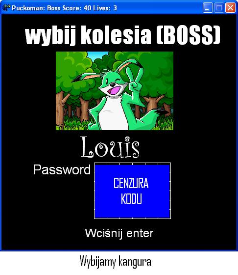 Hanjuso Opublikowano 13 Listopada 2005 Udostępnij Opublikowano 13 Listopada 2005 chodzi mi o to ze wpisalem byle jaki password przenioslo mnie do rysunku zabij bossa czy jakos tak i na dole byl pokazany password i byl on inny niz ten ktory ja wpisalem Odnośnik do komentarza Udostępnij na innych stronach Więcej opcji udostępniania...