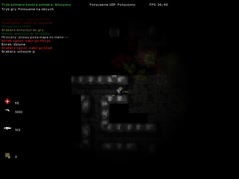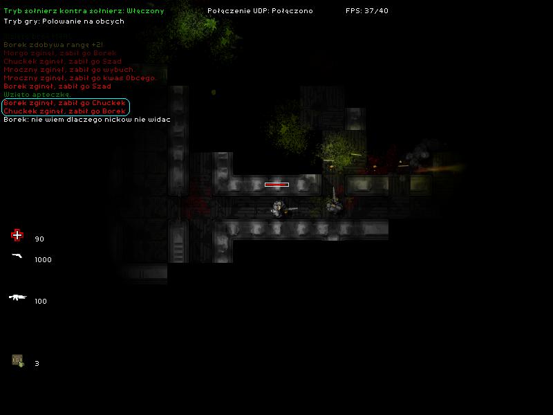 Indrycho Opublikowano 21 Stycznia 2009 Udostępnij Opublikowano 21 Stycznia 2009 łeeee, serwer został wyłączony :jezor: , ale zdążyłem trochę pograć, i zostać zabitym 15 razy przez Borka :D heh strasznie dziwaczny ten system pokazywania fragmentów mapy z kwadratów, ale gra się na nim zarąbiście. Spodobało mi się oznaczenie amunicji (wszystkie skrzynki takie same, tylko numerki broni inne). Przydało by się, żeby na tej liście posiadanych broni, (tam po lewej), był obok/przed każdą, jej numer, znacznie by to ułatwiło grę, przynajmniej na początku, bo potem to już wiedziałem który jest shotgun, czy uzi xD. Raz mi się poza plansze udało wyjść przez jakiś lag, bo potem mnie cofnęło wprost na kosmitę ;p, a raz nie zrespawnowało mnie i wszystko było czarne, za to widziałem graczy, ich paski życia i strzały. ED: heh Flaque dokładnie pamiętam ten błąd serwa xDDD ED: Flaque twój dopisek "znów" w nicku fajnie się komponował z komunikatami ^_^ Odnośnik do komentarza Udostępnij na innych stronach Więcej opcji udostępniania...