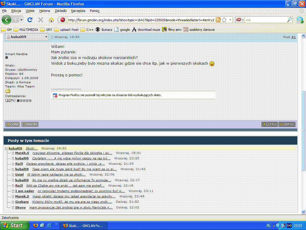 Skovv Opublikowano 13 Lutego 2009 Udostępnij Opublikowano 13 Lutego 2009 Elo.Mam taki problem i nie wiem o co chodzi.Więc jest forum GMClan i wchodzę do tematu i zamiast post pod postem jest tak:KLIK Odnośnik do komentarza Udostępnij na innych stronach Więcej opcji udostępniania...