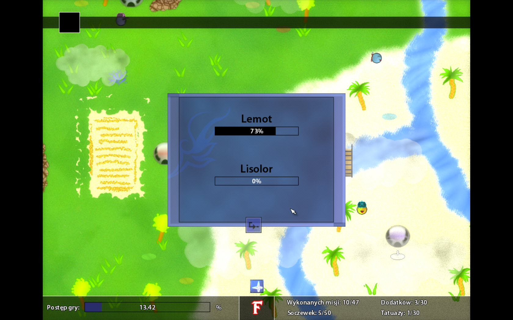 Saus Opublikowano 8 Sierpnia 2009 Udostępnij Opublikowano 8 Sierpnia 2009 Fuaru Fabuła: Nasze imię to Astell. Pochodzimy z rodu Ardeia, który nagle stanął w obliczu wojny z ludem Eylon. Jedyne co możemy zrobić to próbować znaleźć legendarnego smoka Fuaru, który potrafi spełniać życzenia. A teraz, omówię dokładnie co jest w grze, krok po kroku: Pierwsze, chyba najważniejsze: do przycisków do określonych okien informacyjnych dostaniemy się klikając lewym klawiszem na bohatera. Dialogi przewijamy spacją, a do domków wchodzimy enterem. Podczas gry możemy przełączać pomiędzy dwoma trybami: a ) Tryb Fabularny Podczas tego trybu na dole ekranu widzimy 'F' - jeśli jest czerwone, nie wykonujemy żadnej misji i jesteśmy gotowi do podjęcia nowej. Można wykonywać 1 w danym czasie. NPC mający dla nas misje poboczne mają nad głowami czerwona strzałkę: , a Ci "popychający" fabułę główna - niebieską strzałkę: Podczas wykonywania misji, w każdej chwili możemy kliknąć na 'F', żeby przypomnieć sobie co mieliśmy zrobić. Po lewej widzimy pasek postępu gry, na 100% gry składa się: 1) Wykonanie wszystkich misji tj; Misje fabuły głównej: #1: 'Początek początków' #2: 'Starość + Kryształy = Czystość?' #3: 'Czy ktoś zamawiał pieczonego Eylona?' #4: 'Jeśli ja nie mogę iść do drewna - drewno przyjdzie do mnie!' #5: 'Bananowy raj' #6: 'Nie upuszczę Cię aż do śmierci!' #7: 'Zabawa w Robin Hooda' #8: 'Pieczony Eylon poraz drugi' #9: 'Główka pracuje' - podmisja: 'Budujemy mosty, budujemy mosty!' #10: 'Pamiętne czasy zakonu' #11: 'Śmierć ludzkośći' #12: 'Tajemniczy wojownik' #13: 'Żałoba' #14: 'Patrzcie! Jestem Farmer Fran!' #15: 'Farmer Poksi' #16: 'Niegrzeczny Jaklap!' #17: 'Boruk i kosmici to nic dobrego' #18: 'Śmieszne - nie, głupie - tak' #19: 'Dawne porachunki' #20: 'Człowiek, który robi coś z niczego' #21: 'Czy jeszcze kiedyś zjem robaka?' #22: 'Spóźniona dostawa' #23: 'Wielka Kradzież Auta' #24: 'Czy to już?' #25: 'Fuaru' Dodatkowa misja dla maga Lemot: #26: ''Grzebie mnie w kościach' - Misje dla: Klan Płonącego Lisa - członkowie tego klanu zwykle znajdują się w królestwie Lemota #1: 'Gdzie są moje okulary, w kółko pytał pan .. Gnas?' #2: 'Kokonako nie lubić woda' #3: 'Duma dla mojego klanu' #4: 'Środki Czystośći' (Reputacja 30+ i misja 'Kokonako nie lubić woda') #5: 'Pokonana własną bronią' (Reputacja 30+) #6: 'Podróż w czasie' (Reputacja 50+) #7: 'Znalezione, nie kradzione!' - Misje dla: Bractwo Lśniącej Muszli - członkowie tego klanu zwykle znajdują się w północnej części królestwa Lisolora #1: 'Niewidzialny złodziej' #2: 'Tulimy! Nosimy! #3: 'Chodź! Pomaluję Twój świat!' (misja 'Tulimy! Nosimy!) #4: 'Romeo, ach Romeo..' #5: 'Zaginione butelki' (Reputacja 30+) #6: 'Kamienie Szlachetne, albo Szlachetnie Kamienie' (Reputacja 50+) #7: 'I jeszcze jeden, i jeszcze raz' (misja 'Kamienie Szlachetne, albo Szlachetnie Kamienie') - Misje dla: Stowarzyszenie Obronnych Wilków - przesiadują w swoim królestwie gdzie czczą swojego guru - Nakasia #1: 'Malarstwo - moje drugie imię' #2: 'Najciemniej pod latarnią' #3: 'To pewne! On zniknie!' #4: 'Oko za ząb!' #5: 'Moja własna ofiara' #6: 'Babcia' #7: 'Wniebowstąpienie' (Wymagane są wszystkie poprzednie misje w Stowarzyszeniu, tą misję dostajemy od samego Nakasia który znajduje się na środku królestwa, a nie jak poprzednio - w swoim domu) - Misje dla: Gildia Magów - znajdują się na swojej wyspie #1: 'Odnowienie' (misja potrzebna do wszystkich innych) #2: 'Łowca Duchów' #3: 'Ognisty Wiatr' #4: 'Mały głód' #5: 'Rękawica zanurzona w śmierci' (Reputacja 40+) #6: 'Podaruj mu radość' #7: 'Zaszczyt' Przy niektórych misjach w nawiasie są wymagania. Osobiście polecam najpierw przynajmniej rozpoczęcie fabuły głownej, wprowadza nas po kolei w funkcje gry, a i dostajemy część przedmiotów, które będą nam potrzebne do misji pobocznych ( można je oczywiście też kupić, ale po co, skoro tam mamy za darmo :)? ) 2) Zebranie 50 soczewek rozrzuconych po mapie. Są niezwykle cenne, ale i małe, więc widzimy je dopiero z określonej odległości. Za każdą dostaniemy 20 monet, co oznacza, że za wszystkie 50 dostaniemy ich aż 1000. Mogę powiedzieć, że obok miejsca startu gry leży jedna soczewka więc można zobaczyć jak to wygląda :P 3) Zdobycie 30 tatuaży (10 tylko poprzez misje) 4) Zdobycie 30 dodatków (10 tylko poprzez misje) b ) Tryb Bojowy W trybie bojowym, na dole ekranu na środku widzimy 'B', kiedy jest czerwone aktualnie toczy się walka. Po lewej widzimy swoje umiejętności, a po prawej nasze zdrowie, oraz zdrowie przeciwnika - jeśli takowy znajduje się na mapie. Dodatkowo, kiedy przeciwnik jest na mapie w tym trybie widzimy obok bohatera strzałke pokazującą nam, gdzie przeciwnik aktualnie się znajduje. Autorzy gry: Fabuła: Saus Osoby odpowiedzialne za misje: Saus, PoxiPol, PsichiX, Arkarius, Powell, Zeke Kod: Saus, PsichiX (bloom), Pieter (poruszanie się przeciwników) Testerzy: Arkarius, PsichiX Grafika: Saus, Japanstache (ikony) Muzyka: "Sonic 2 Ending Theme", autor: DrWaldo "Sonic 2 Casino night zone", autor: Zineb "Sonic the Hedgehog Starlight", autor: Evan-kaminari "Sonic 1 Labirynth zone", autor: Zombie Posessor "Kirby Green Greens", autor: Brunzolaitis Screeny: 1, 2, 3, 4, 5 Download: Klik! Rozmiar: ok. 14 mb Wymagania: Szczerze mówiąc, bez blooma gra powinna banglać na największym gruchocie. Z bloomem gra jest już trochę bardziej wymagająca, ale co lepsze komputery spokojnie sobie poradzą :) Uwaga: Czasem, po zapisie lub wczytaniu gry, bloom może nam się wyłączyć. Wtedy, najzwyczajniej w świecie włączamy go sobie w opcjach. No i mam nadzieję, że ta gra przyniesie wam dużo śmiechu i radości :P Przecież po to była zrobiona! Saus Odnośnik do komentarza Udostępnij na innych stronach Więcej opcji udostępniania...