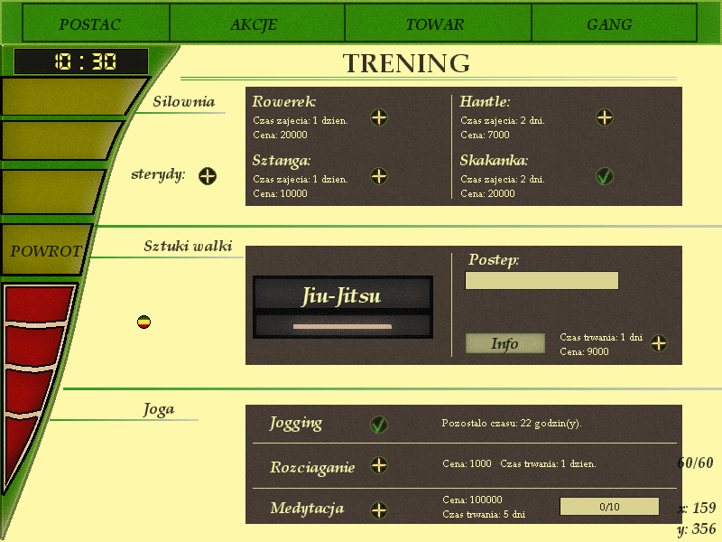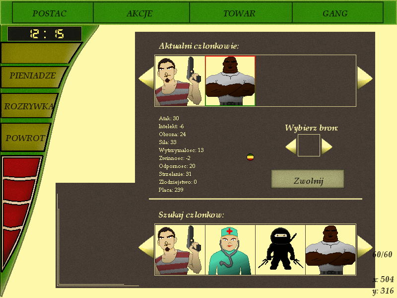 lenin Opublikowano 24 Października 2009 Udostępnij Opublikowano 24 Października 2009 Tytuł: Drug Gang of Junky Gatunek: hmm, Tekstowy RPG z elementami strategii i gry akcji? Opis: Drug Gang of Junky to tekstowy RPG, którego głównym celem będzie stworzenie gangu i dowodzenie im. Akcja będzie skupiała się wokół handlu narkotykami, kradzieżach i innych przestępstwach. Celem gry będzie przejęcie wpływów w pięciu dzielnicach poprzez walki z innymi gangami bądź napady na dane miejsca (sklepy, banki etc.). Ogólne cechy gry: - System rozwoju umiejętności postaci, wraz z nauką sztuk walki ( łącznie 14 umiejętności, 6 stylów walki oraz treningi na siłowni). - Ponad 70 różnych przedmiotów do kupienia w sklepie ( w tym bronie i samochody) - Walki rozgrywane w czasie rzeczywistym, wraz ze sterowaniem własną postacią i wydawaniem prostych komend gangowi - Osobne cechy i umiejętności członków gangu ( majątek gangu przeznaczony może zostać na zakup nowych broni i rozwój umiejętności jego członków). Autorzy: Programowanie: Lenin Fabuła: Lenin Grafika: Lenin Muzyka: Obecnie brak Screeny: Inwentarz Ekran treningu Wybor członków gangu Pierwsze podejscie do walki Miałem wogóle nie dawać zapowiedzi ani dema, jednak stwierdziłem, że przydadzą mi się wasze opinie. W tym temacie też za jakiś czas umieszczę jakąś wersję alpha dla testów. Btw wiele rzeczy jest jeszcze nie skonczonych m.in. ceny danych rzeczy, więc nie czepiajcie się, że np. trening na skakance kosztuje tyle, bo za wyważanie cen zabiorę się dopiero. Odnośnik do komentarza Udostępnij na innych stronach Więcej opcji udostępniania...
