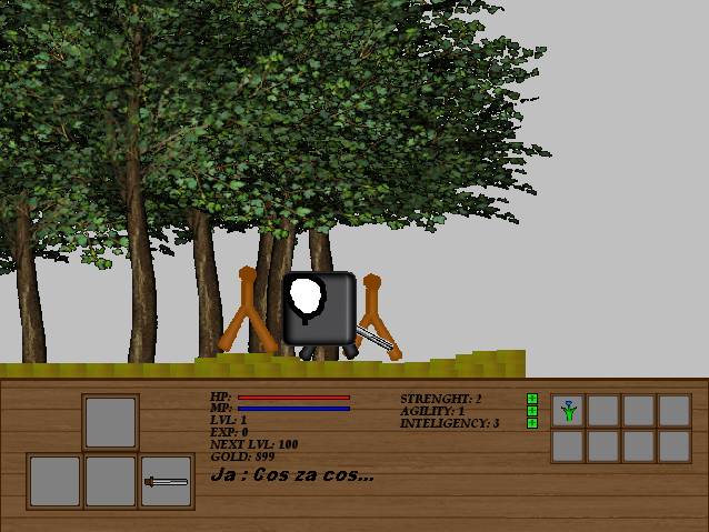 Markar Opublikowano 26 Grudnia 2009 Autor Udostępnij Opublikowano 26 Grudnia 2009 Dodałem system rozmów i cut scenek, system misji, ewkipunku, i troszeczkę jeszcze drobiazgów ;) Rozmowa wygląda tak że podchodzi się do postaci, klika się enter, pojawia się po lewej stronie postaci z którą rozmawiamy nasz avatar, i na dole mamy napisane co mówimy, jak klikniemy enter to kolejny dialog, wtedy znika nasz avatar i pojawia się avatar osoby z którą rozmawiamy, i na dole to co mówi. Na końcu rozmowy mówi np. Potrzebuje zielone ziele(xD) to pojawia się tabelka z zapytaniem czy chcesz pomóc kolesiowi. Screen: https://gmclan.org/up5695_5_Scr4.html Dialogi na razie po Polsku, słaba jakość screena bo za dużo zajmował. Odnośnik do komentarza Udostępnij na innych stronach Więcej opcji udostępniania...