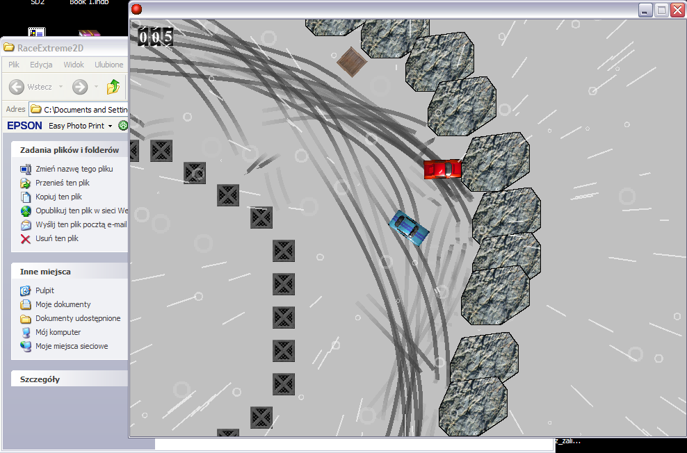 DobryZiom Opublikowano 9 Lipca 2010 Udostępnij Opublikowano 9 Lipca 2010 Witam Ponownie. Mam dzisiaj dla was zapowiadany wcześniej mini silniczek do samochodów top-down. Funkcjonalność: -Dźwięk - Jest to chyba pierwszy silnik dla Game Makera który posiada funkcje do odtwarzania dźwięku samochodu. Przy odtwarzaniu dźwięku samochodu gracza bierzemy pod uwagę prędkość samochodu dzięki czemu całość wychodzi realnie. Przy odtwarzaniu dźwięku samochodu bota bierzemy pod uwagę prędkość oraz odległość przez co w miarę oddalania zmniejsza się słyszalność samochodu bota. -Muzyka - Silnik (bazuje na XeAudiere.dll) posiada mały zestaw skryptów dzięki którym muzyka wczytywana jest z zewnątrz, utwory są odtwarzane jeden po drugim, możliwość przełączenia w dowolnym momencie na dowolny utwór. -Fizyka - Cały silnik jest połączony z świetnym DLL'em fizycznym "ExtremePhysics.dll" dźwięki czemu jazda samochodem, zderzenia samochodów ze sobą lub innymi obiektami są bardzo realistyczne -Pogoda - Dałem prościutki skrypt na losowanie pogody i dodałem dla przykładu deszcz z przykładu z tej strony. CREDITS: -Grafika: **->Z przykładu ExtremePhysics.dll **->Z przykładu deszczu **->Z przykładu efektownego licznika punktów -Muzyka: **->W całości Ja(DobryZiom) -Dźwięk: **->Internet -Fabuła: **->Brak -Programowanie: **->Ja(DobryZiom) **->Platyna-Efektowny licznik punktów **->Dawidds-Przykład Deszczu DOWNLOAD: https://gmclan.org/up6605_4_RaceExtreme2D.html Odnośnik do komentarza Udostępnij na innych stronach Więcej opcji udostępniania...