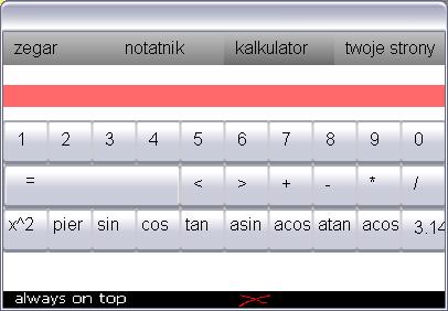 TheMarcQ Opublikowano 24 Sierpnia 2010 Autor Udostępnij Opublikowano 24 Sierpnia 2010 -"pi" tylko dopisuje do tekstu "3.14", więc mogę uzyskać liczbę "6663.143.143.143.143.143.14" kalkulator jest w ogóle do zmiany, wiem -ale przesunac (NIE MA POLSKICH ZNAKÓW!) tekst w lewo/prawo trzeba nawalać w ten przycisk myszką nie starczyło mi cierpliwości na zrobienie tego lepiej -gdy zrobie coś, co jest niepoprawne (dziele przez 0, niepoprawna składnia ("3.143.14", "7-**/+-*+2") wynik się zeruje - możesz tym zmylić. to akurat zrobiłem specjalnie -ulubione to chyba jakaś kpina T_T ?? -mam podawać ścieżkę dostępu do przeglądarki? nice nie umiem zrobić wyszukiwarki wyszukiwarek :/ -widziałeś gdzieś program który zamyka się wciskając Esc? coś nie pasuje? Odnośnik do komentarza Udostępnij na innych stronach Więcej opcji udostępniania...