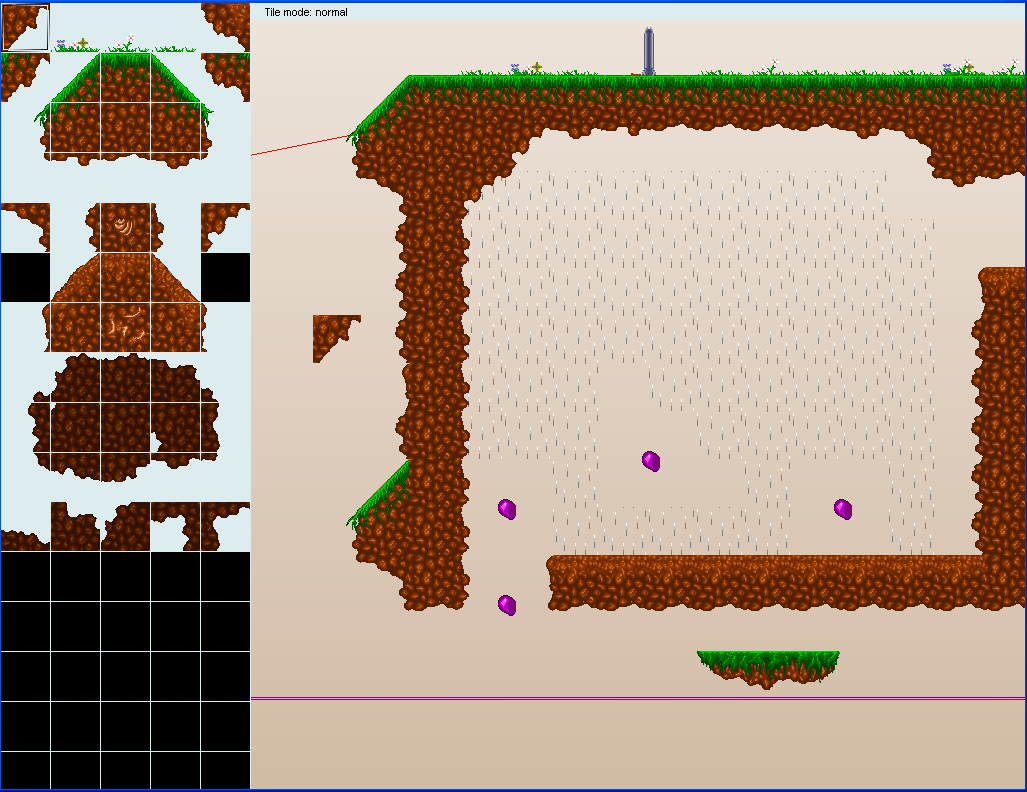 I am Lord Opublikowano 14 Września 2010 Udostępnij Opublikowano 14 Września 2010 Tytuł: Clonoes Gatunek: platformówka z elementami logicznymi Opis: Będzie to gra platformowa z elementami logicznymi i zręcznościowymi. Co 40 sekund nasz bohater się klonuje, klony wykonują dokładnie takie same ruchy co pierwowzór tyle że opóźnione o 40 sekund. Jeżeli np. zabijemy potworka to ten za 40 sekund się odrodzi i stanie się dla nas nietykalny, dopiero nasz klon będzie mógł go zabić. Nasze klony będzie trzeba wykorzystać do uruchamiania przycisków, umieszczonych w podłogach lub zawieszonych na ścianach ( w takie trzeba strzelić ). Znaczącym utrudnieniem jest to że nie możemy wejść w naszego klona ani strzelić w niego i vice versa to będzie zmuszało nas do zapamiętywania w, których miejscach staliśmy czy strzelaliśmy aby uniknąć kontaktu. Musimy zbierać jakąś tam ilość % owoców z mapy aby się otworzył nam portal, to ile procent zależy uzyskać zależy już od mapki. Jest już zrobiona spora część silnika gry. Kolizje per pixel zarówno postaci jak i pocisków, trampoliny, ruchome platformy, podmuchy powietrza, system particlesów, effect blura itd. Do zrobienia mam jeszcze level editor ( dla mnie ), później wbudowany edytor dla was, w którym przechodząc kolejne światy będzie można odblokowywać jego elementy. Czeka mnie do zrobienia sporo tilesów, chcę by grafika była zróżnicowana i by gracz przechodząc od świata do świata, naprawdę widział że przechodzi do nowego a nie tylko się domyślał po zmienionym układzie elementów mapy. Po za tym nie mam żadnych dźwięków i muzyki, tutaj prawdopodobnie będę potrzebował pomocy :P. Nie ma też fabuły, nie nadaję się do wymyślania historyjek. 6 październik 2010: Ważniejsze różnice pomiędzy moją grą a Time Slip, które już zostały wprowadzone lub mam taki zamiar: - różni się czas klonowania, u mnie jest dłuższy to oznacza że będzie mniej mniej klonów na mapie niż w Time Slip - gracz posiada HP, niektóre potworki zabijają od razu gdy się w nie wejdzie a niektóre tylko ranią. - przyciski i drzwi mogą mieć podpięte bramki AND lub OR to oznacza większe możliwości/kłopoty :P przy otwieraniu drzwi. - są tilesy które potrafią zakrywać instancje, umożliwi mi to później stworzenie sekretów. - będzie dostępny edytor światów to znaczy że graczę będą mogli tworzyć nie tylko własne mapy ale także całą kampanię. Nad edytorem jeszcze pracuję, już sporo go zrobiłem, brakuje porządnego interfaceu i opcji robienia kampani przez graczy. - planuję zrobić jeszcze pułapki, których brakowało Time Slipowi, jakieś kolce, zapadnie. Autorzy: Programowanie: Jakub Michalski ( to ja ) Fabuła: brak Grafika: Jakub Michalski Muzyka: brak Screeny: 6 październik 2010: Test połączeń bramek logicznych z przyciskami. https://gmclan.org/up539_6_edytor_test_pola...ramek_z_pr.html Edytor - edycja tabliczki z tekstem https://gmclan.org/up539_6_edytor_edycja_ta...i_znapisem.html Edytor - stawianie ruchomej platformy https://gmclan.org/up539_6_edytor_stawianie...mej_platfo.html Edytor - stawianie Tilesów https://gmclan.org/up539_6_edytor_stawianie_tilesow.html stare: Na screenach jest parę placeholderowych grafik a w tile secie brakuje sporo bajerów i jest parę niedociągnięć, do poprawy. Odnośnik do komentarza Udostępnij na innych stronach Więcej opcji udostępniania...