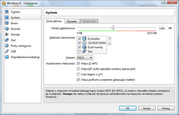 Arekadiusz Opublikowano 2 Marca 2012 Udostępnij Opublikowano 2 Marca 2012 No więc postanowiłem sobie zainstalować Windows 8 na wirtualnej maszynie. Wybrałem darmowy VirtualBox. Pobrałem obraz iso, podczepiłem go, ustawiłem ustawienia tak jak w tym poradniku. Uruchamiam i jest najpierw ten komunikat: (biorę kontynuuj) potem ten: następnie chwile się ładuje i po jakimś czasie pokazuje się to: Na jakiejś stronie przeczytałem że musi być włączona wirtualizacja sprzętowa jednakże ja nie wiem jak ją włączyć. Jeżeli chodzi o Ustawienia>System>Akceleracja u mnie ta karta nie jest dostępna :( Będę wdzięczny za pomoc bo chciałbym sobie przetestować ósemkę. Odnośnik do komentarza Udostępnij na innych stronach Więcej opcji udostępniania...