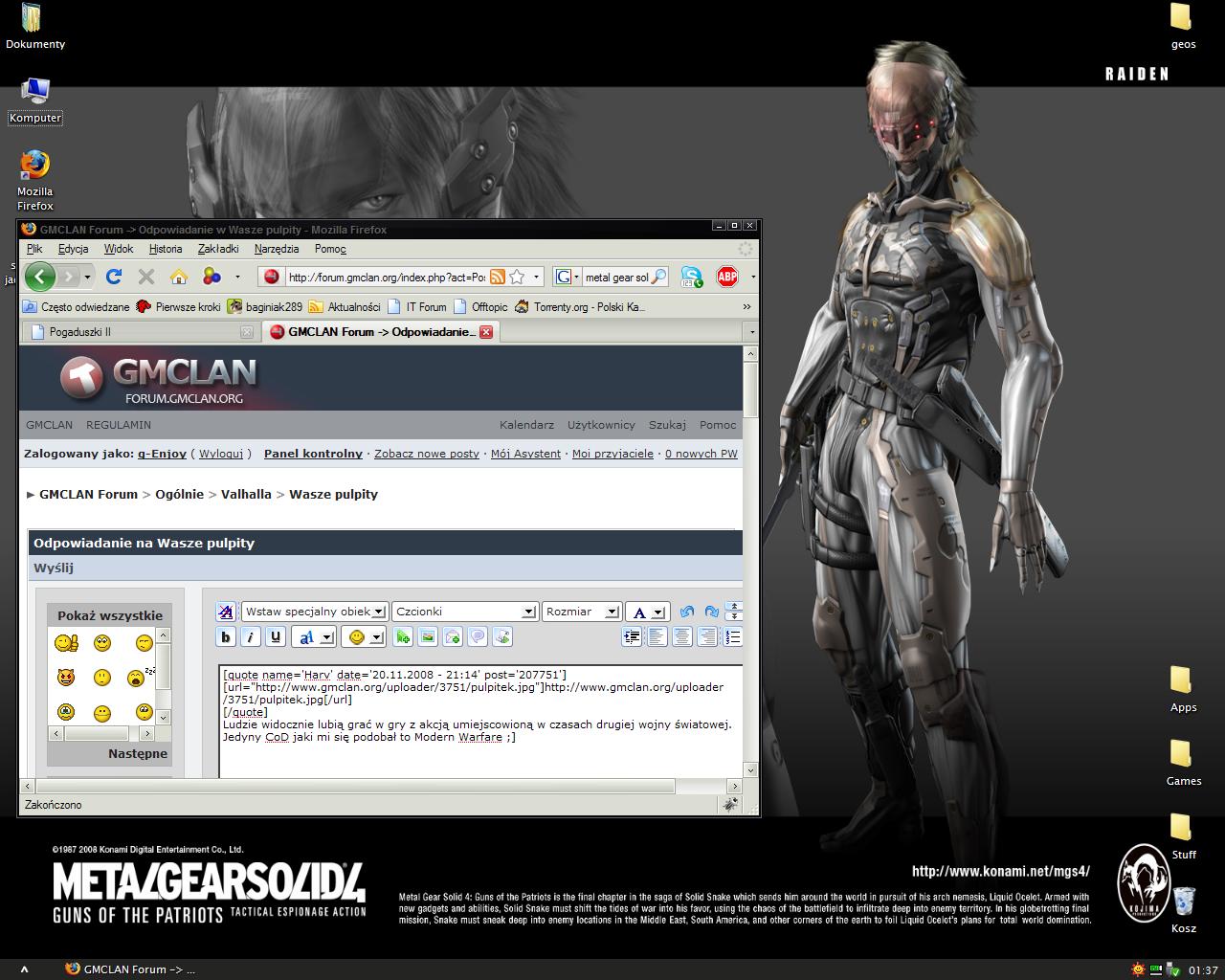 XivroX Opublikowano 27 Listopada 2008 Udostępnij Opublikowano 27 Listopada 2008 heheh, a to jest mój pulpit. Lubie gdy jest uporządkowane :] Odnośnik do komentarza Udostępnij na innych stronach Więcej opcji udostępniania...
