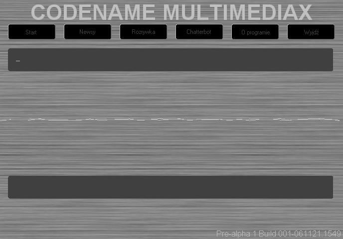 FiFi Opublikowano 21 Listopada 2006 Udostępnij Opublikowano 21 Listopada 2006 Zaczynałem parę razy tworzyć kilka gier i programów, ale nigdy ich nie ukończyłem i nie są raczej godne pokazania :P. Ale teraz postanowiłem się do tego zabrać całkowicie serio i stworzyć program na poziomie :] To co Wam pokażę to dopiero bardzo wczesna wersja programu, i pierwsza skompilowana. Program nosi nazwę kodową MultimediaX i najprawdopodobniej ulegnie ona zmianie... Narazie działa tylko chatterbot w dodatku wyciągnięty z przykładu Tymona xD Cóż właściwie to póki co nie mam się czym pochwalić :D :Pre-Alpha 1: Build 9 Zmiany: -nowy kursor -podmenu do newsów i rozrywki -kilka niedokończonych rzeczy ukrytych w wersji publicznej :] Download: https://gmclan.org/up1524_4_CodeName_MultimediaX_build_9.html Build 1 Oto 2 screeny: Start: https://gmclan.org/up1524_6_cd_mmx_001.html Chatterbot: https://gmclan.org/up1524_6_cd_mmx_001_cbot.html Odnośnik do komentarza Udostępnij na innych stronach Więcej opcji udostępniania...