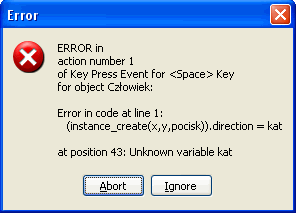spyro Opublikowano 5 Lutego 2007 Udostępnij Opublikowano 5 Lutego 2007 A daj np. w objekcie 'press Space' tam gdzie masz instance_create zamiast x i y to Człowiek.x i Człowiek.y (oczywiście nie można pisać w GM-mie polskich znaków)... Albo dodaj w object create zmienne takie jak 'kat'... btw. Czy pamiętałeś o tym, by ustawić w posisku akcję start moving into direction po stworzeniu, aby posisk się poruszał...? Odnośnik do komentarza Udostępnij na innych stronach Więcej opcji udostępniania...