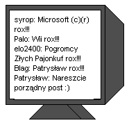 pablo1517 Opublikowano 20 Marca 2007 Udostępnij Opublikowano 20 Marca 2007 keee? Byłem pewien ze nabijamy się z takich widocznych "wad" userów. Np: Marudzenia dziadka, czy noobienia noobow... ale ja nie mowilem nigdy czegos w stylu "nie obrażać Maria" oO? Co najwyżej broniłęm postaci z mojego avika bo tej grze należy się szacunek. OMG. Satyra to jedno, zmyślanie to 2. heh... Peace and love...and "dragi". Odnośnik do komentarza Udostępnij na innych stronach Więcej opcji udostępniania...