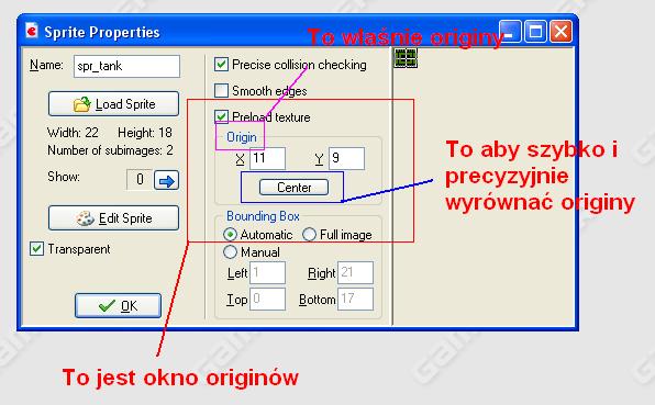 blackmaul Opublikowano 28 Marca 2007 Udostępnij Opublikowano 28 Marca 2007 a mozna z naszego na PL to powiedziec? ;] bo nie czaje ;o omfg, help nie gryzie. Edycja sprite'a -> origin (Koordynaty: Spójrz w prawo!) ustawiasz tam jego środek. Względem tego punktu będzie określane potem centrum sprite'a. Odnośnik do komentarza Udostępnij na innych stronach Więcej opcji udostępniania...