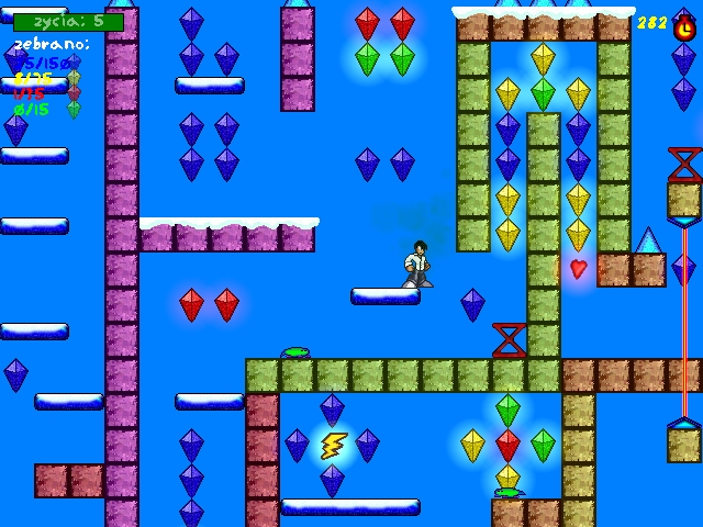 Jakim Opublikowano 26 Czerwca 2007 Udostępnij Opublikowano 26 Czerwca 2007 Tytuł: IcyLand Gatunek: Platformówka Opis: IcyLand to platformówka stworzona specjalnie na #8 Batalię Click Portalu, której głównym celem jest zwyczajne nabijanie punktów i zwiedzanie kolejnych poziomów (a tych jest 10 + 1 bonusowy). Jest to gra ewidentnie niedokończona (nie znajdziemy tutaj fabuły, majestatycznych teł, stylowej grafiki itp.), robiona w zaledwie 15 dni. Brak czasu wymusił niestety ode mnie użycie gotowego silnika (choć mocno zmodyfikowanego) i miejscami gotowych sprite'ów (głównej postaci), za co bardzo przepraszam*. Nie zdążyłem także do końca zoptymalizować kodu, więc jeśli gra nieco przycina - wystarczy po prostu wyłączyć w opcjach efekty specjalne (OPCJE -> EFEKTY). Co znajdziemy w grze? (możesz ominąć ten fragment ;)) Bezimienny bohater, który przemierza mroźne korytarze bez większego celu, może podczas gry rozwijać swoje umiejętności - tj. wyżej skakać, uodparniać się na ataki itp. Poziomy wydają się proste do przejścia, jednak prawdziwą sztuką jest zebranie wszystkich diamentów z planszy (a za to jest dosyć pokaźny bonus punktowy). W lodowych salach czyhają także różne niebezpieczeństwa - armaty, lasery czy kolce. Kolejnym przeciwnikiem, tym razem niematerialnym, jest upływający czas, który nie pozwala na słodką bezczynność. Wszechobecny ścisk utrudnia rozgrywkę i tym samym wymaga od gracza cierpliwości oraz zręcznych palców. Bohater nie pozostaje jednak całkowicie bezbronny - na planszach porozrzucane są kule mocy, które można wykorzystać do eksterminacji uporczywych wrogów. Download: https://gmclan.org/up506_4_IcyLand.html Rozmiar pliku: 1736KB Autorzy: Programowanie: Jakim, modyfikowany FoxEngine Fabuła: brak Grafika: Jakim, gotowe sprite'y :( Muzyka: Jakim, Dune Screeny: Menu Wyniki Świat 1 Świat 2 * - choć mam nadzieję, że nie będzie to stanowić dużego problemu :). Właściwie nie będę już tego kontynuował. Jeśli ktoś koniecznie chce, mogę mu udostępnić plik *.gm6. Odnośnik do komentarza Udostępnij na innych stronach Więcej opcji udostępniania...