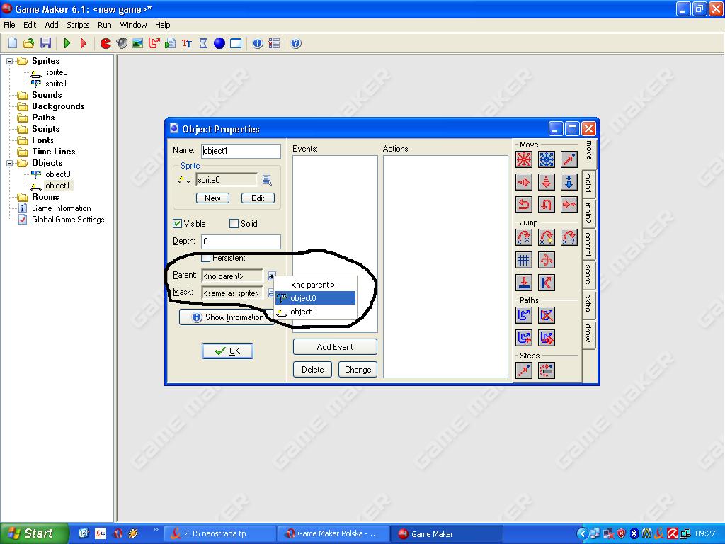 themindfields Opublikowano 9 Sierpnia 2007 Autor Udostępnij Opublikowano 9 Sierpnia 2007 O dziwo, nie działa :/ Mam tak: Information about object: obj_controller Sprite: <no sprite> Solid: false Visible: true Depth: -1 Persistent: false Parent: <no parent> Mask: <same as sprite> Draw Event: at position (view_xview+800,view_yview+1) draw image -1 of sprite menu Co źle mam? Albo może jest jakiś inny sposób żebym osiągnał zamierzony cel? Odnośnik do komentarza Udostępnij na innych stronach Więcej opcji udostępniania...