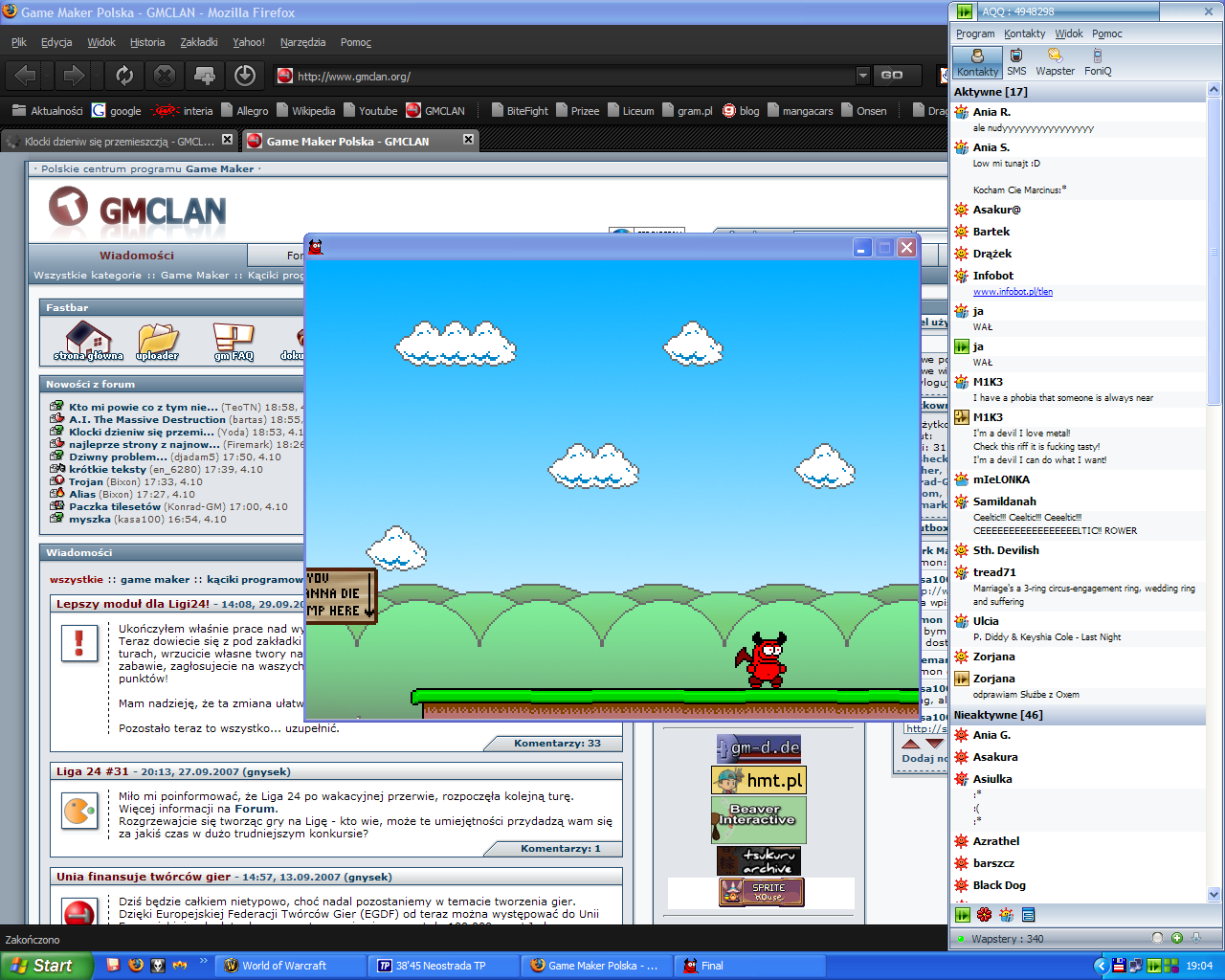 zbysheck Opublikowano 4 Października 2007 Udostępnij Opublikowano 4 Października 2007 http://www.gmclan.org/up2473_3_Al_the_Devilz.html Tu wyżej są zaczątki mojej gierki i mam problem - gdy przeskoczy sie przepaść i zrobi kilka kroków, klocki podłoża zaczynają skakać dziwnie, wie ktoś czemu? Odnośnik do komentarza Udostępnij na innych stronach Więcej opcji udostępniania...